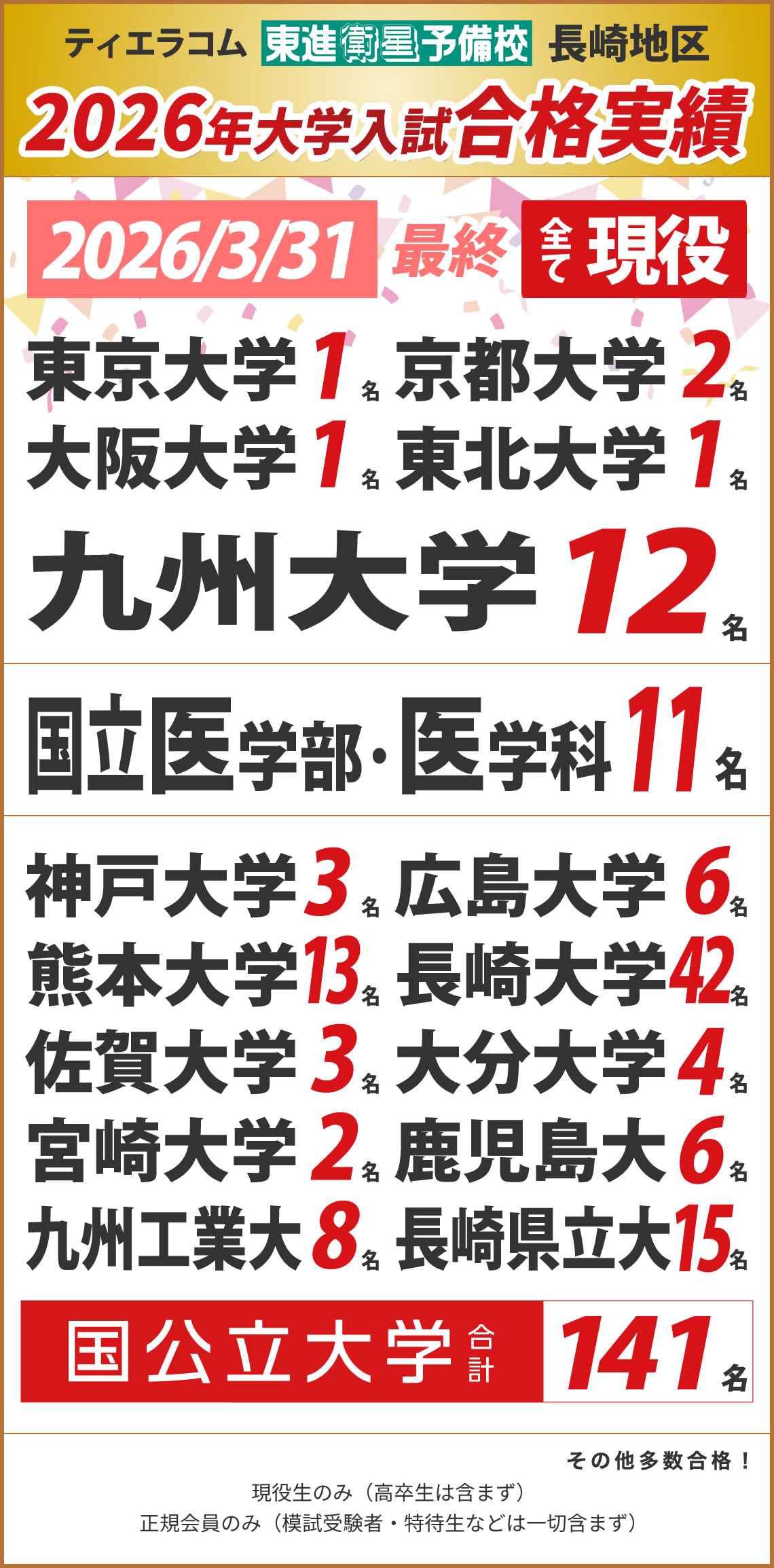 • ・合格実績の確定は3月31日を締め切りとする。4月1日以降に判明した合格者は計上しない。
